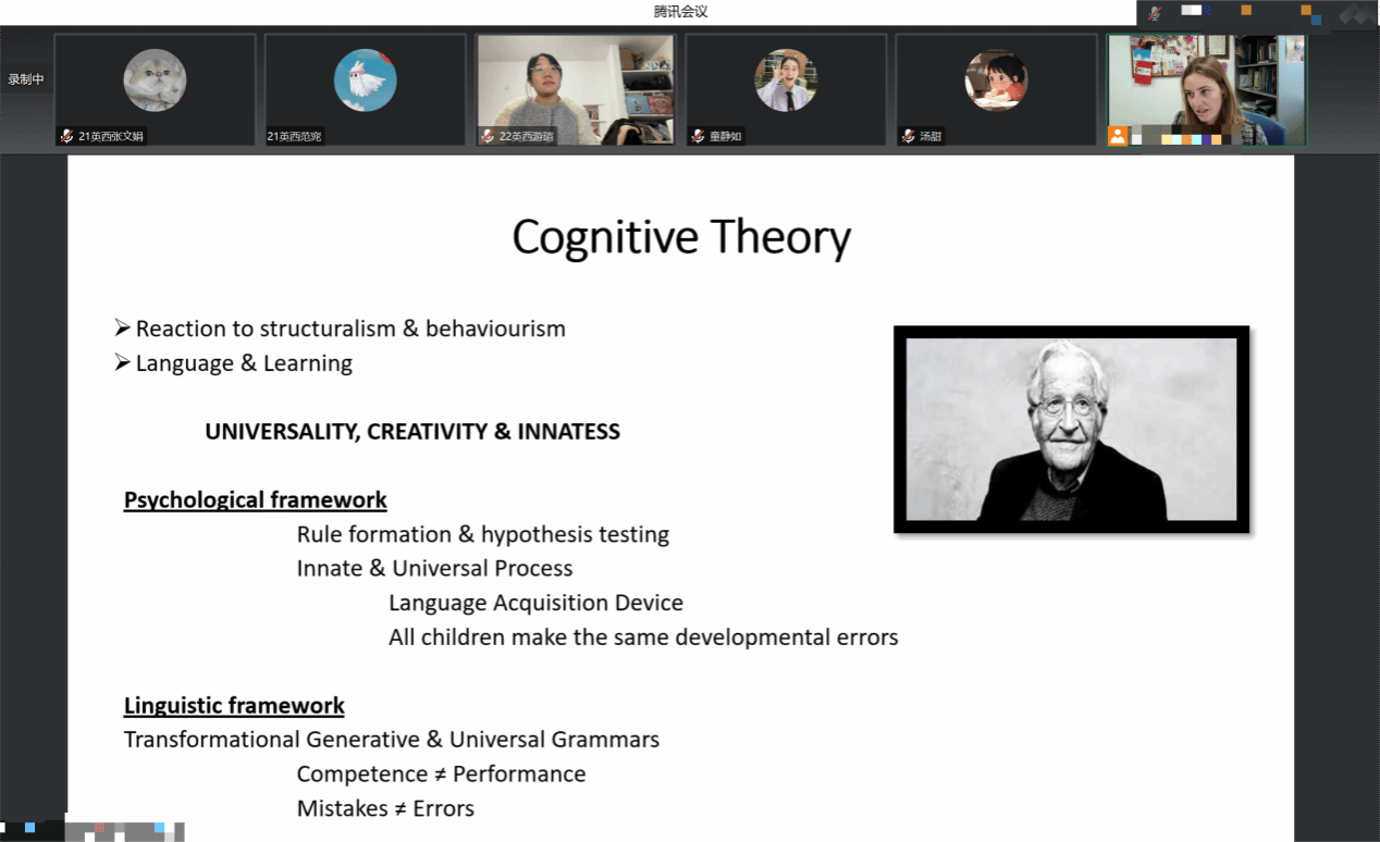 于2023年12月10日下午16:30至17:30成功举办了一场主题为“Introduction to Teaching and Learning L2 in Europe-From Grammar Translation to Communicative Language Teaching”的线上讲座。本次讲座邀请到了塞维亚大学的教授及博士生导师Coral Ivy Hunt Gomez博士担 任主讲嘉宾,由我校西班牙语教师黄冰主持。此次活动吸引了来自2020级至2023级英语专业和英西复语专业的学生100余人参加。