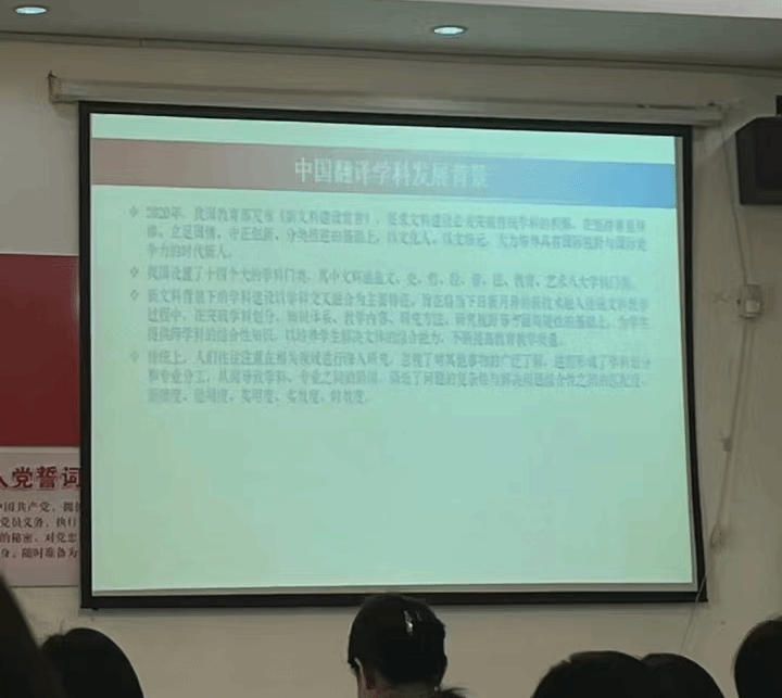 师生做学术讲座。本次讲座由学院院长陆秀英主持,主题为《新时期应用翻译研究:机遇与挑战》。