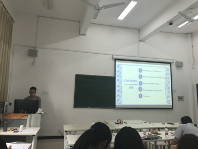 本次“译之道”翻译沙龙学术交流会以“思翻译,研翻译”为主旨,18级MTI班长首先在会上致欢迎词,随后18级MTI专业学生每人开始做5至8分钟的PPT展示并用全英文汇报自己的成果。本次学术沙龙主题分享共有15位同学参加,大家畅所欲言,分享自己学术研究成果。同学们分别从豪斯评估模式、生态翻译视角、意义再生视角、平行文本视角、文化对外传播语境等视角深入探讨新闻类翻译研究、花艺文本研究、公司简介翻译、陶瓷民俗文化等多项翻译领域。