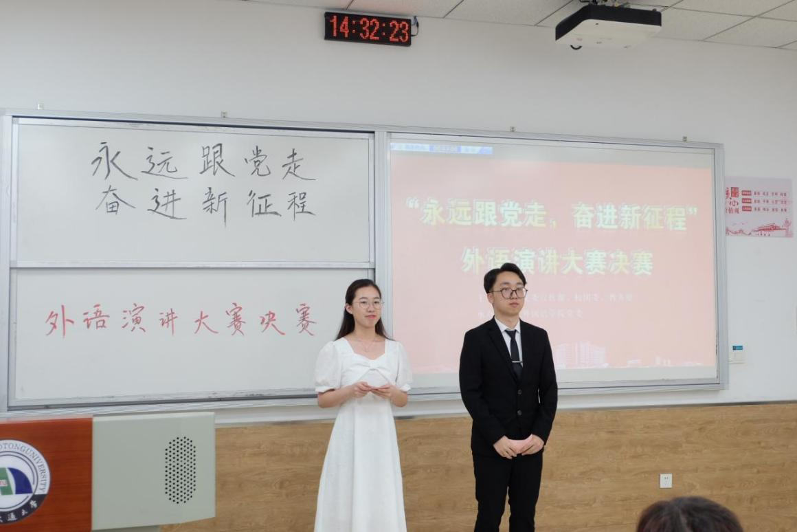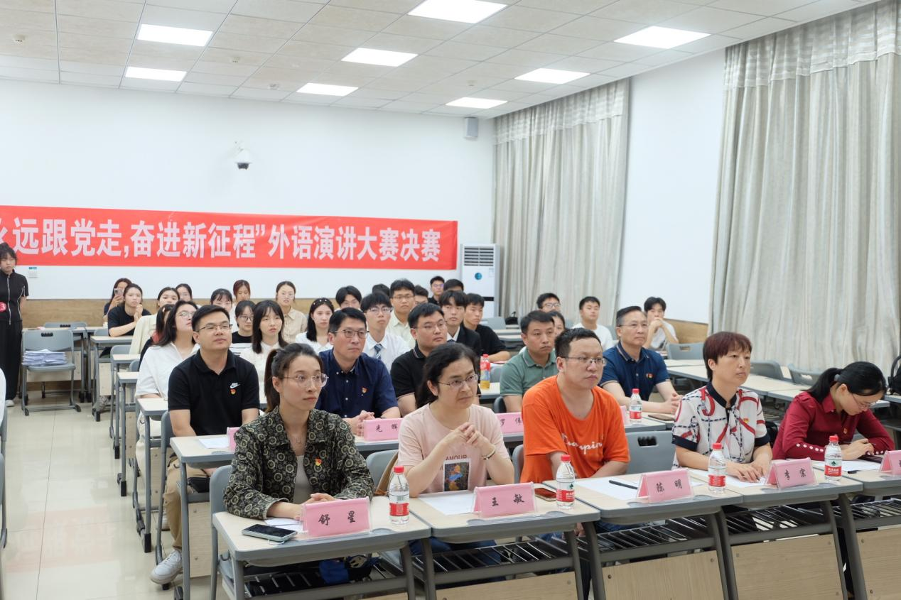 党委面向全校学生联合举办“永远跟党走,奋进新征程”外语演讲大赛。2023年6月8日14:30,“永远跟党走,奋进新征程”外语演讲大赛决赛在教25-108教室顺利举行。