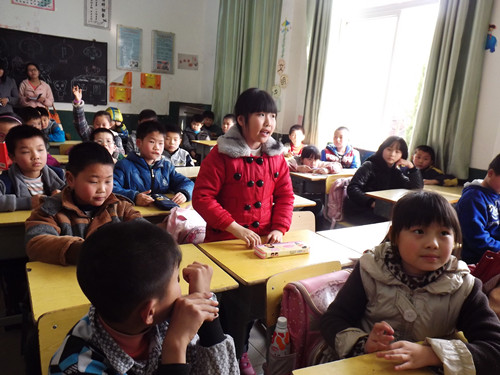 世纪英才二期学员周玲、刘潇帅等人相互配合,共同完成。周玲首先为同学们介绍了雷锋同志,并向同学们提出相关问题,同学们踊跃举手与老师分享雷锋事迹;王凯巍更是拿出绝技,口琴独奏《红星闪闪》,以琴声引领大家重温雷锋时代,激励着大家学雷锋,争优先;接着,刘姝希亦以她独特方式与同学们交流学习雷锋的感受,短短的四十分钟支教在刘潇帅,徐铮攀的猜游戏与英文歌曲欣赏中欢快地落下帷幕 !