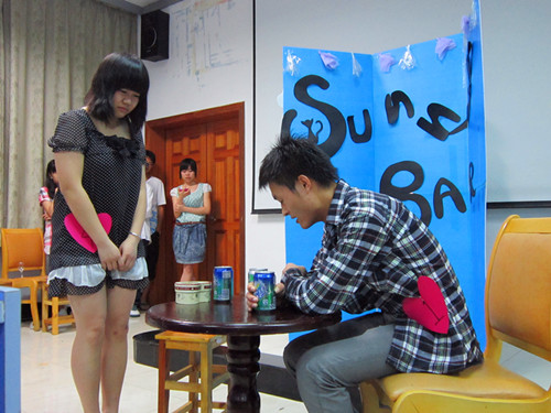 外语社主办的“爱show”英语剧决赛在北区15栋116举行。经过初赛的角逐,共有6个班级进入本次比赛的决赛。吃瓜