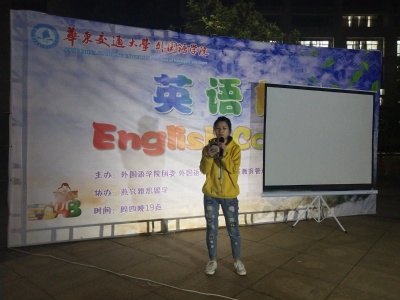 10月11日,由17级翻译二班主办的英语角活动于外院楼前广场如期举行,吃瓜