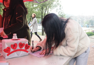 礼仪队主办的女生节活动摊位前人来人往,热闹非凡。现场工作人员介绍说,你可以匿名留下一份礼物或者一段祝福,我们会为你转达。“这次活动很有意义,不仅加深了我对美妆、健康、安全等方面的了解,还让我明白怎样‘内外兼修’提高自己,真的收获满满。”18电气九班的秦潇开心地说道。