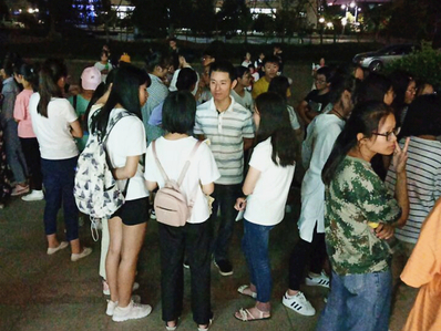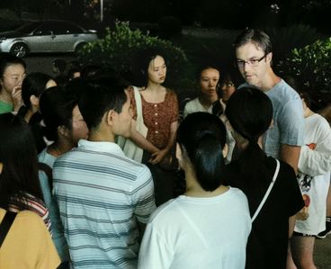 18翻译一班主办的英语角活动于外院楼前小广场上成功举行。Amine,LaQuete,Drew三位外教应邀参加此次活动。