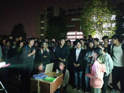18国贸三班主办的英语角活动在外院小广场顺利举行。Amine、LaQuete、Drew三位外教应邀加。