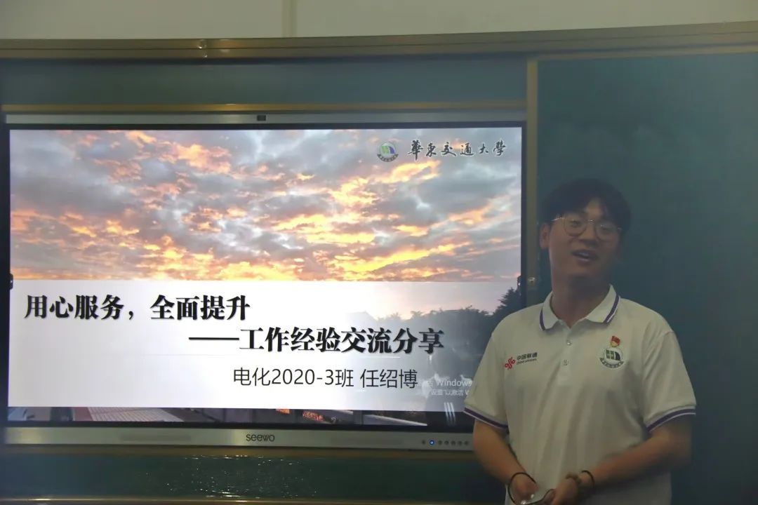 一天的外出实践结束后,实践队开展了以老带新学生骨干培训会。由电气学院学生会第39届执行主席任绍博分享他三年以来的学生工作经验、技巧及工作时的注意事项,同时还对在座学生骨干提出的问题进行了耐心解答。