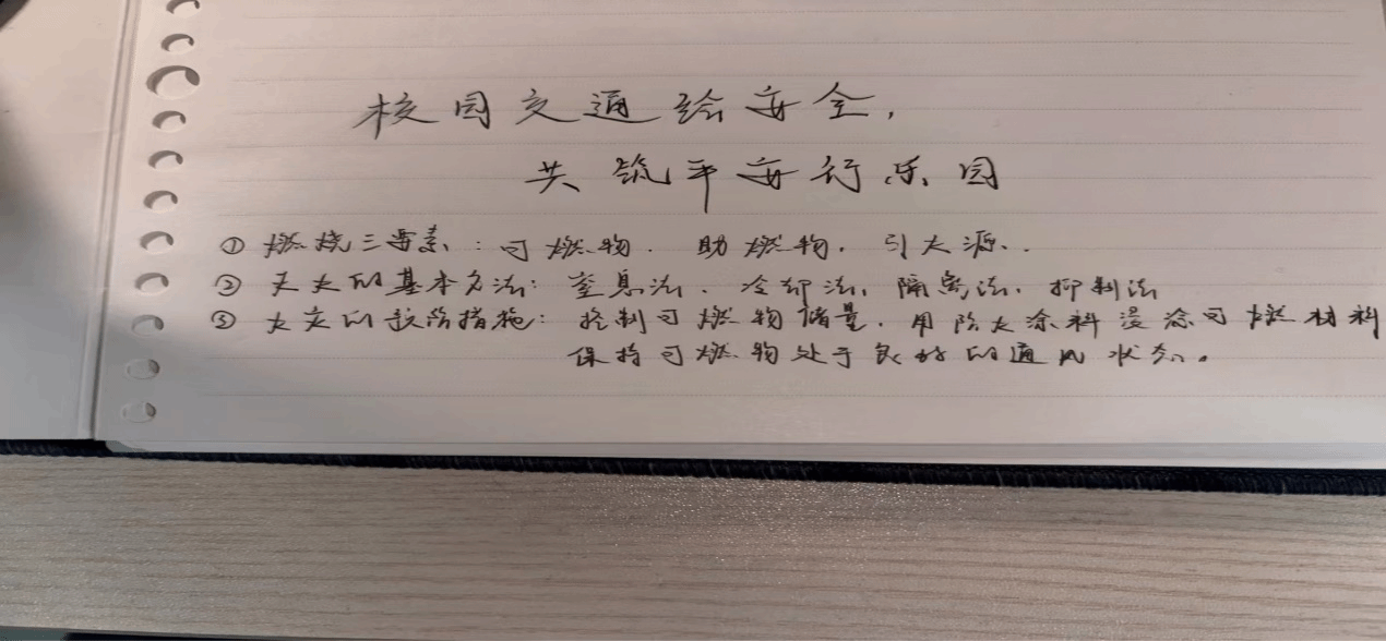 于2024年11月11日至11月15日举办了以“消防安全”为主题的班会,并组织同学们参与校园消防安全基础知识的撰写,使学生进一步认识到消防安全的重要性并能有效预防消防事故。