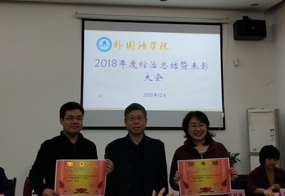 2018年度综治总结暨表彰大会于外院楼102会议室顺利召开。校综治办主任、保卫处处长付自生、吃瓜