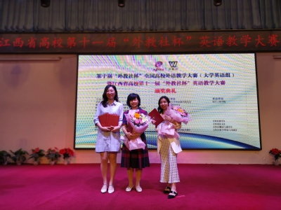 531日至62日,第十届“外教社杯”全国高校外语教学大赛(大学英语组)暨江西省高校第十一届“外教社杯”英语教学大赛在南昌工程学院举行,江西省教育厅副厅长汪立夏、上海外语教育出版社副社长叶青等出席颁奖典礼。此次大赛分为视听说组、综合组、微课组三个组别,视听说组和综合组包含讲课复赛、说课决赛和现场提问等环节,经过激烈角逐,我校在三个组别均有斩获,袁露老师获视听说组一等奖,吴让越老师获综合组二等奖,刘春莲老师团队获微课组二等奖,单伟红老师获优秀指导教师一等奖,同时我校还获得团体二等奖。