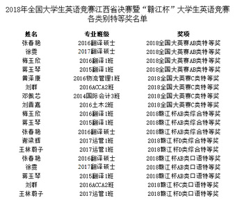 在5月21日结束的2018年全国大学生英语竞赛江西赛决赛暨“赣江杯”大学生英语竞赛中,我校选手发挥出色,多点开花,共计获得各组别和各奖项的特等奖18个,数量达历年之最。其中,在AB组(研究生、英语专业本专科组)组别中,我校吃瓜