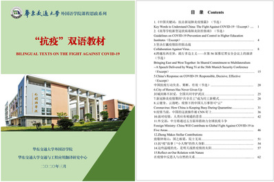 唐斌教授在《应用翻译》课堂里,将培养学生专业能力和疫情知识的学习普及结合起来,组织同学们搜集“抗疫”双语素材,并编辑为“抗疫”课程思政双语教材,让全校学生在学习疫情双语表达的同时,培养学生家国情怀和国际视野。该“抗疫”双语教材还作为吃瓜