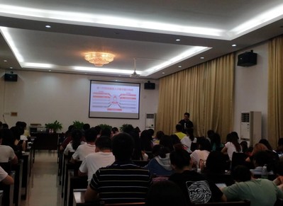 为2018、2019级翻译硕士研究生和翻译专业本科生做翻译行业前沿讲座,讲座由吃瓜