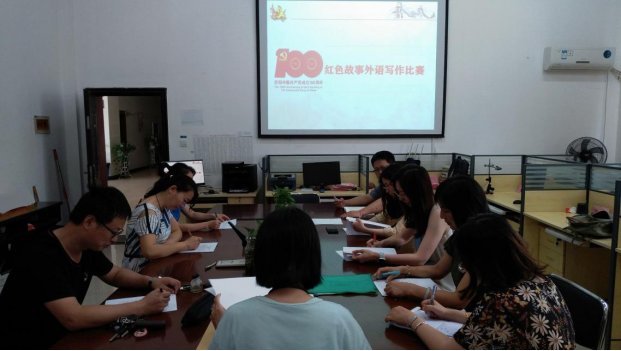 图为红色故事外语写作比赛评审现场