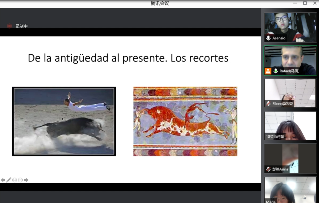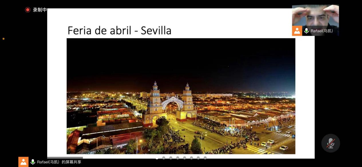 吴丽萍:很高兴能够有机会与这么优秀的老师连线交流,Rafael老师上课很有趣,图文并茂,讲课逻辑性强,给我们普及的西语国家节日文化与我们本学期修的西班牙与拉美商务礼仪与文化课程的内容相辅相成,提高了大家学习西语的兴趣,老师在课上还不断引导我们思考,跟我们互动,课后也非常热情地为同学答疑解惑。