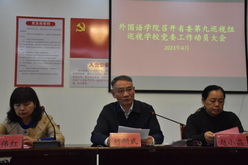 4月13日下午,外语学院组织全院教职工于博雅楼102会议室学习省委第九巡视组巡视吃瓜