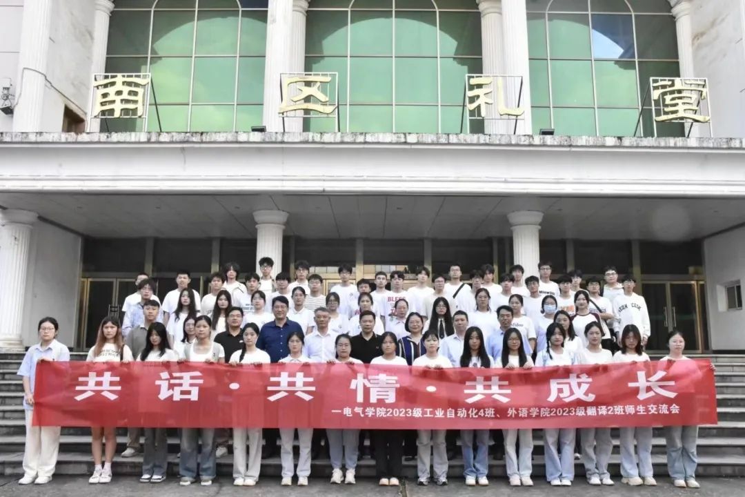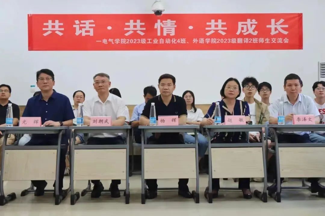 翻译2023-2班共同召开“共话·共情·共成长”主题班会。副校长杨辉,电气学院党委书记赵敏、院长李泽文、党委副书记刘修财,外语学院党委书记刘朝武、党委副书记光辉以及学工办负责老师一同参与本次主题班会。