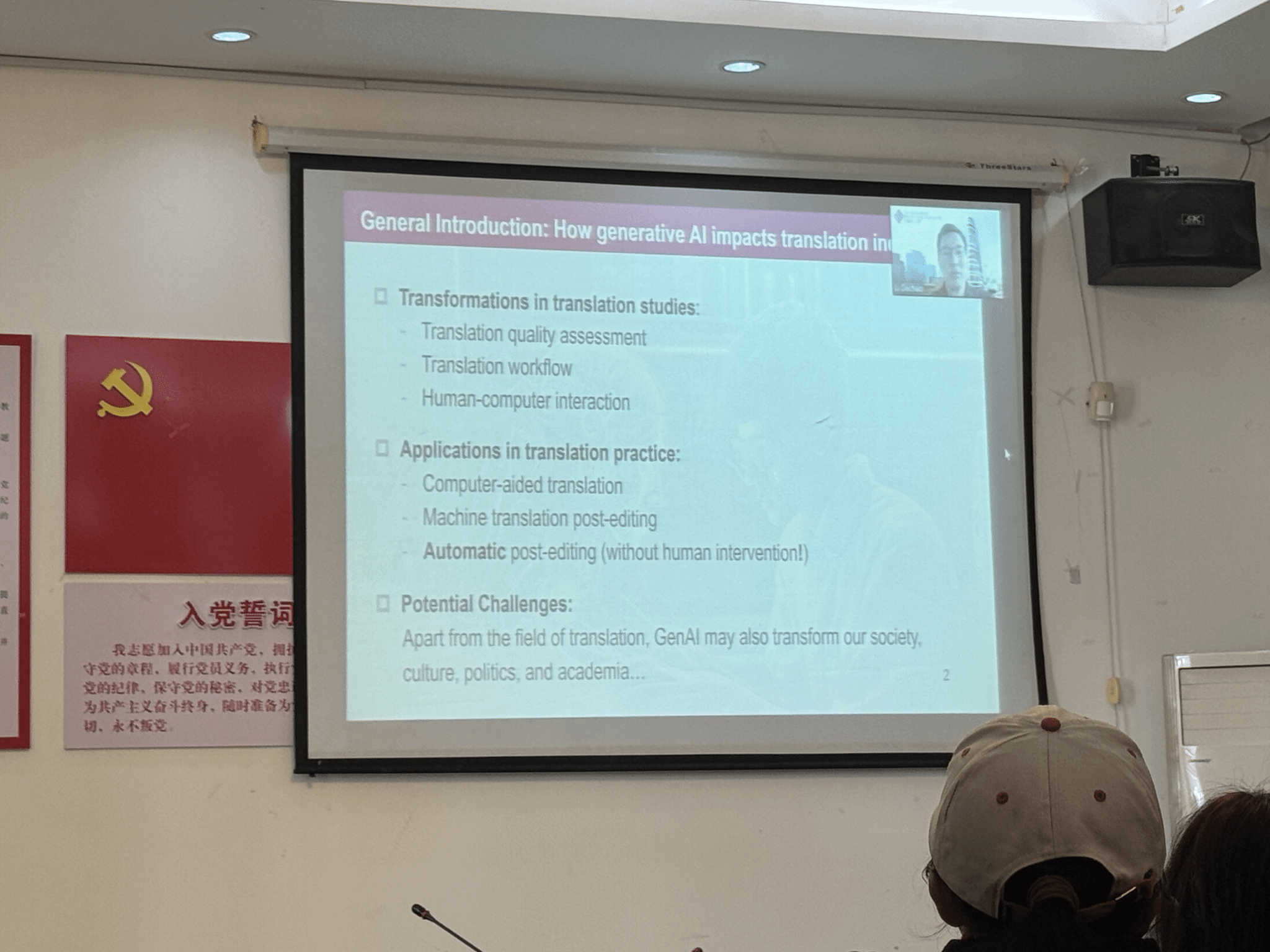 2024年12月25日下午14:00,香港理工大学中文及双语学系李德超教授应邀为学院师生做主题为《生成式人工智能在翻译领域的进展与应用》线上讲座。本次讲座由李星副院长主持,吃瓜