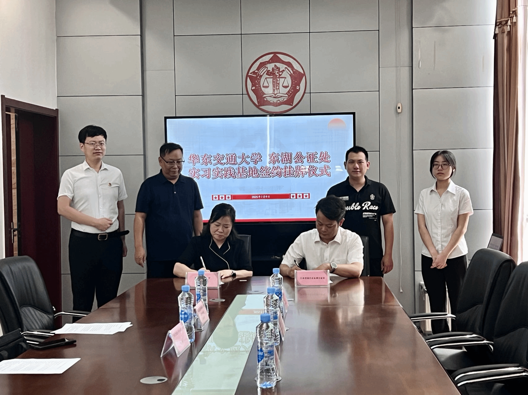 院长陆秀英、副院长李星赴江西省南昌市东湖公证处,正式签署合作协议,共建实习实践基地。东湖公证处主任陈海明和墩子塘司法所所长李云龙参与本次签约仪式。