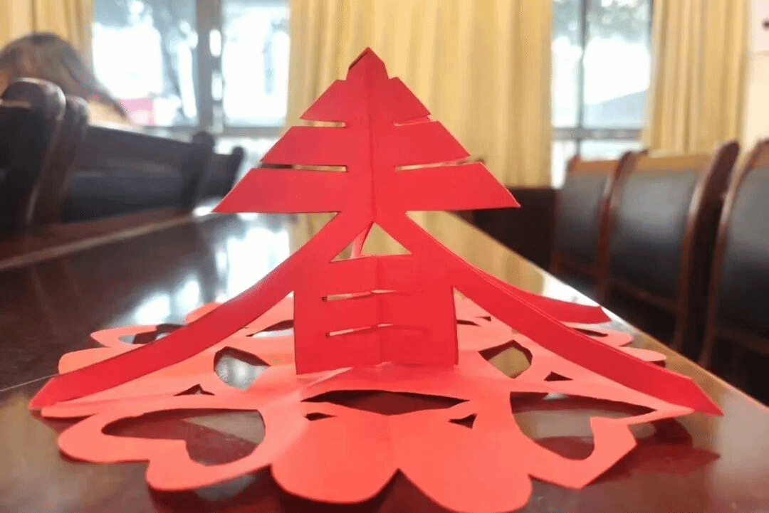 现场作品精彩纷呈,“红心向党”团花剪纸以镂空线条勾勒出灵动韵律,彰显我党成立至如今的辉煌历程,熠熠生辉,立体中国字“春”字剪纸则将传统汉字与折纸技艺结合,兼具观赏性与巧思。活动尾声的作品展示与小礼品环节,更让大家在分享中加深了对非遗文化的认同。