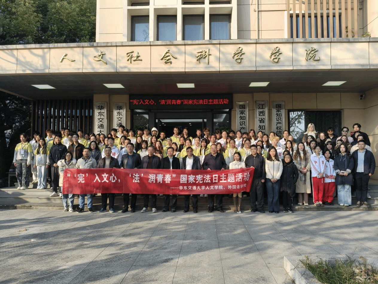 活动接近尾声,老师、同学们一同合影留念。相机定格的瞬间,老师们温和的笑容、学生们灿烂的神情,与横幅上“‘宪’入文心,‘法’润青春”的字样相映成趣。这张合影里,有师生同心的温情,有中外学子的交融,更有法治精神在青春里扎根的生动印记。